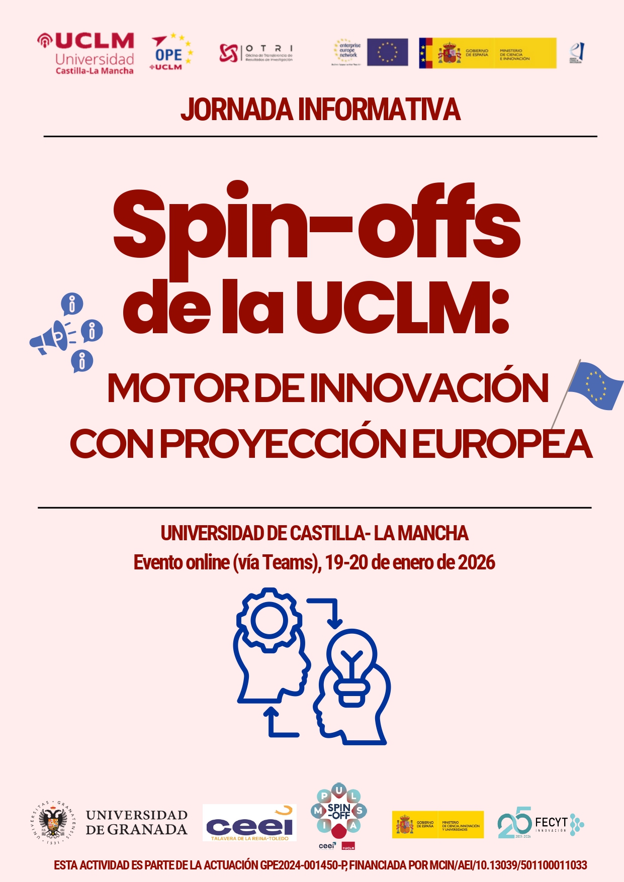 Más información e inscripción: Jornada “Spin-offs de la UCLM: Motor de innovación con proyección europea” – Inicio.